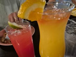 Passons au repas... Vous avez du choix que ce soit pour les entrées, les plats et les desserts. A savoir : Vous trouverez des plats aux saveurs africaines et américaines. Les plats s'accordent avec le thème du resto. Ça change un peu, c'est sympa ! Il ne ressemble pas aux autres restos que l'on a pu tester. Toujours grâce au dining plan, nous avons commencé notre repas avec un p'tit cocktail !!! Hum, très très bon ! On a enchainé avec les entrées et les plats. Nous avons pu tester de nouveaux plats et élargir notre horizon. C'était bon et pas trop épicé pour ceux qui se posent la question. Les desserts sont plus classiques. Cependant, il y a eu quelques toutes p'tites déceptions ! Je suis obligée d'en parler sinon mes enfants vont m'en vouloir !!! Ce sont les boulettes de viande (ou pas ?). Ils en ont pris plein, ils étaient ravis de pouvoir manger les boulettes comme à la maison. Eh bien, NON ! Ce n'étaient pas les mêmes. Et en plus, ils n'ont pas aimé !!! C'est marrant parce qu'ils ont associé ce resto aux boulettes ! Sinon, rien de bien grave, je vous rassure, il y a plein d'autres choix. Pour notre part, à mon mari et moi, on a mis un p'tit bémol sur les desserts. Après, on avait peut-être un peu trop mangé avant...