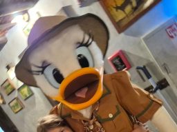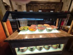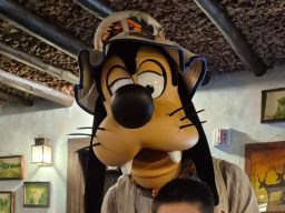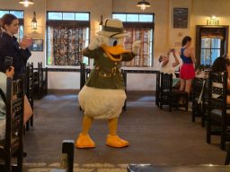 La découverte Le Tusker House est un restaurant service à table (donc il faut penser à prévoir les taxes et les tip's en plus) avec personnages. C'est un buffet à volonté et se situe dans la zone Africa du parc Animal Kingdom. On avait réservé vers 13h et on a attendu quelques minutes avant d'être placés. Ce restaurant est simple et joli. Il a une vraie identité et une ambiance à part entière. Les tenues des personnages sont sympas. Vous pourrez y rencontrer Mickey, Donald, Daisy et Goofy (notre Dingo) en tenue d'aventuriers. Le p'tit plus : pas besoin d'aller faire la queue dans le parc pour les rencontrer. Là, ils viennent à vous... Une fois installé et que le serveur est passé, vous pouvez aller vous servir. P'tit conseil important : regardez où sont les personnages avant d' y aller. Pourquoi ? S'il y en a un qui n'est pas loin, vous risquez de le rater. Il vaut mieux jeter un p'tit coup d’œil et assurer le coup ! Après, normalement les casts font attention, mais sur un malentendu... On a eu la chance de voir 2 fois Mickey et Daisy. Les salles n'étant pas pleines et les personnages suivants un chemin précis, eh bien , surprise, ils sont revenus !!! En plus des visites, vous aurez droit à une dance des personnages pour ambiancer le restaurant. C'est fun, c'est validé !!!