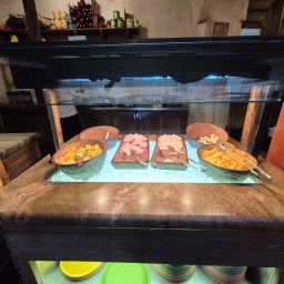 On est content de l'avoir fait. Ce n'est pas un de nos restos préférés mais il vaut le détour. La rencontre avec les personnages est vraiment TOP !!! L'expérience buffet à volonté + les saveurs africaines et américaines est un autre atout. Nos enfants ont adoré choisir ce qu'ils allaient mettre dans leur assiette. La liberté de se promener également ! P'tite astuce ou pas (car non testée ...). Choisir ce resto sur un horaire fin de matinée pour bruncher. Je ne sais pas à quelle heure ils changent les plats mais Kell et Jo (vlog youtube) ont eu cette expérience. Ils ont commencé en formule p'tit dej et ont fini en formule repas. A voir... Dernières info : le menu est à 64 dollars pour les adultes et 42 pour les enfants. En conclusion, le bilan est positif même s'il y a eu moins de pailletes qu'à d'autres. A vous de voir si vous aimez la nourriture proposée et le concept buffet à volonté.
